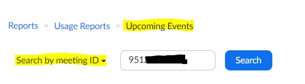 If you searched by Meeting ID click on the EXPORT AS CSV FILE link under the search value . Additionally if you are the host or an alt-host you will actually be able to start the meeting from this list.